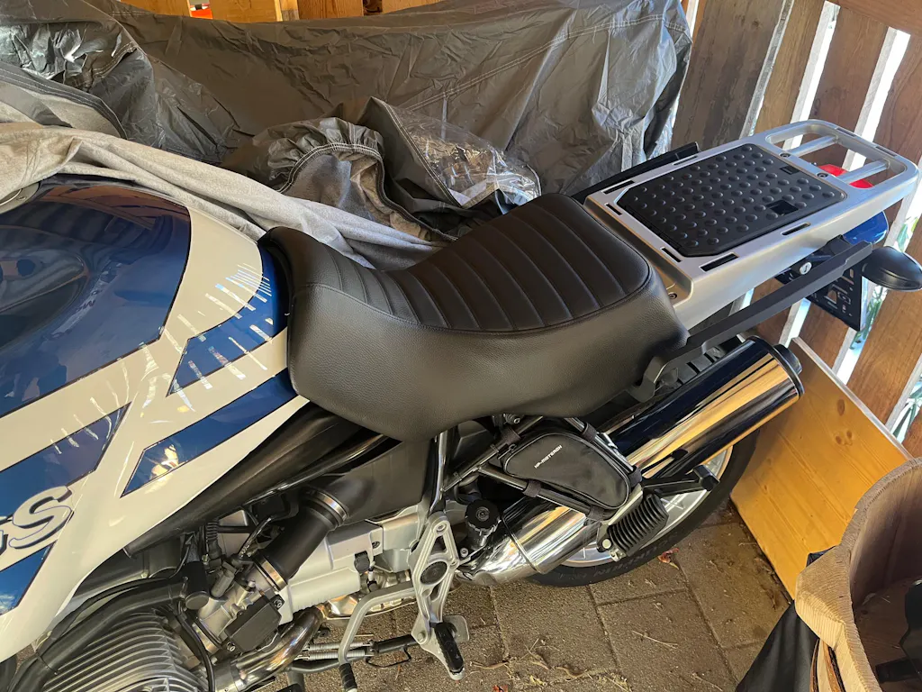 Ich bin begeistert vom Endprodukt, es gibt dem 23 Jahre alten Motorrad einen frischeren Look. Auch das Sitzgefühl ist sehr angenehm. Wahrscheinlich werde ich auch noch den Soziussitz neu bespannen sobald ich Zeit habe.